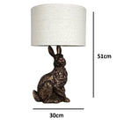 K Living LBUNNY/TL Antique Copper Bunny Rabbit Table Lamp with Natural Linen Drum Shade - 51cm Height