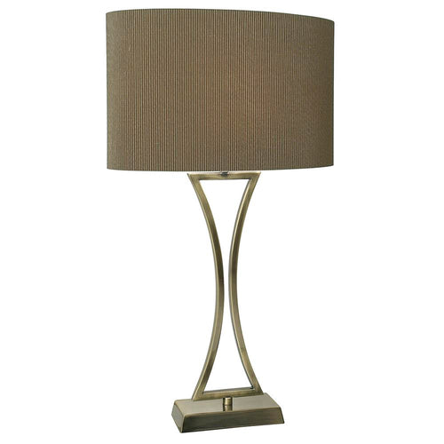 DAR OPO4175 Oporto Antique Brass Wavy Table Lamp with Brown Oval Shade