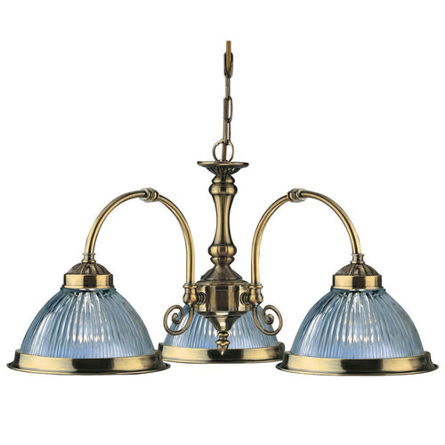 Searchlight 9343-3 American Diner Antique Brass 3 Lamp Pendant with Clear Ribbed Glass – 62cm Diameter