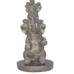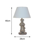 Britalia BRA1018 Antique Silver Resin Elephant Family Table Lamp with White Shade - 46cm Height
