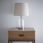 K Living LCHELSEASI/TLWS Satin Nickel & Clear Glass Bell Jar Table Lamp with Natural Linen Shade - 48cm Height