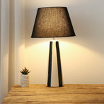 Bring modern elegance to any room with this stylish black stripe ceramic table lamp. Featuring a sleek two-tone base and an olive fabric shade, it provides warm, ambient lighting perfect for bedrooms, living rooms, and workspaces. Its minimalist design and earthy tones make it a versatile décor piece that blends seamlessly with contemporary, modern, and natural interiors. Perfect for everyday lighting or mood lighting, this lamp offers the ideal balance of beauty and practicality. If you're looking for a stylish, timeless piece that enhances your décor while providing warm illumination, this black and cream ceramic table lamp with matching fabric shade is an excellent choice.