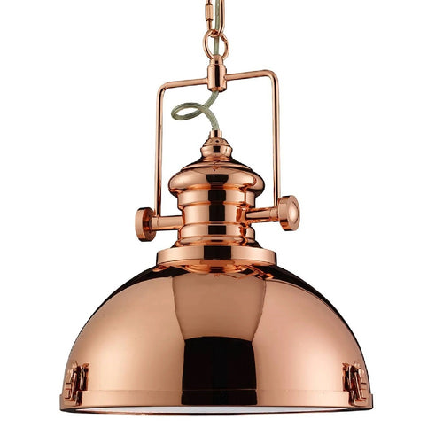 Product: Searchlight 2297CU Polished Copper Retro Metal Dome Pendant Light | Searchlight Electric 2297CU Polish Copper Interior Ceiling Pendant Lighting | Searchlight 2297CU