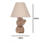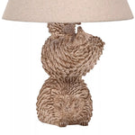 Wood Effect Hedgehog Table Lamp with Beige Fabric Tapered Shade 37cm
