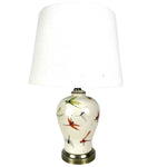 Minster 7471 White and Antique Brass Dragonfly Print Ceramic Urn Table Lamp with White Drum Shade - 53cm Height  This spectacular vintage table lamp is styled around a multi coloured...
