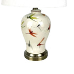Minster 7471 White and Antique Brass Dragonfly Print Ceramic Urn Table Lamp with White Drum Shade - 53cm Height