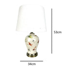 White and Antique Brass Dragonfly Print Ceramic Urn Table Lamp with White Drum Shade 53cm