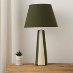 Bring modern elegance to any room with this stylish green ceramic table lamp. Featuring a sleek two-tone base and an olive fabric shade, it provides warm, ambient lighting perfect for bedrooms, living rooms, and workspaces. Its minimalist design and earthy tones make it a versatile décor piece that blends seamlessly with contemporary, modern, and natural interiors. Perfect for everyday lighting or mood lighting, this lamp offers the ideal balance of beauty and practicality. If you're looking for a stylish, timeless piece that enhances your décor while providing warm illumination, this green ceramic table lamp with matching fabric shade is an excellent choice.