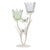 Widdop HE2541 Cream Metal and Green Glass Double Stem Flowers with Butterfly Decoration Tea Light Candle Holder - 37cm Height