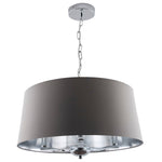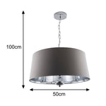 K Living LGIOVANNAGR/3LT Polished Chrome & Grey Cotton Tapered Shade 3 Lamp Pendant Ceiling Light - 50cm Diameter - Silver Metallic Inner Lining