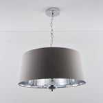 Finish: Polished Chrome Metalwork with Grey Cotton Shade & Silver Metallic Inner Lining