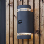 Lutec 5604014118 Focus Anthracite Grey Outdoor Modern Half Cylinder Up & Down Wall Light with Motion Sensor IP44