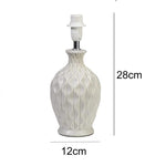 A table lamp with a retro & vintage style honeycomb dimpled base finish in soft light grey ceramic. A chrome stem supports the lampholder with a shade ring to attach your favourite fabric or glass shade to. With a white In-Line On Off switch for an easy & discreet operation. Can be used in any room of the home - Lounge, Bedroom, Sitting Room or Kitchen. Manufactured from high grade ceramic for long term use. Use as a Single Light or Paired to Balance the Room.