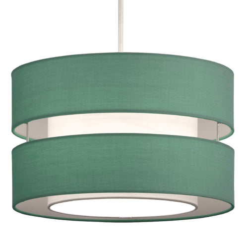 This contemporary duck egg fabric dual banded lampshade is not only stylish but also very practical. The two tier shade is complimented with white plastic inner diffuser which helps soften any light to give that luxury feel. This easy fit shade requires no electrical installation and comes with an adaptor to allow fitting to all types of existing lampholder and can also be used as a pendant light or on top of a table lamp. This allows you to add a splash of colour to brighten up any room.