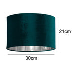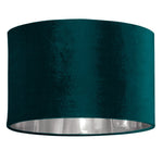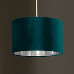 K Living Teal Velvet and Silver Inner Modern Easy Fit Round Drum Lampshade - 30cm Diameter