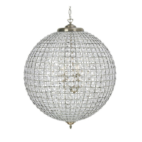 OAKS 4530/60 AB Antique Brass & Faceted Crystal Vintage 3 Lamp Round Globe Pendant Ceiling Light - 60cm Diameter