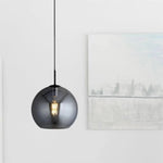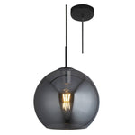 Matt Black & Smoked Glass Dome Globe Pendant Light 30cm