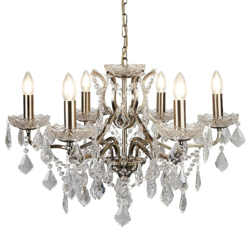 Searchlight 8736-6AB Antique Brass & Crystal Bead Traditional 6 Lamp Chandelier Light - 70cm Diameter