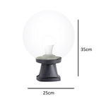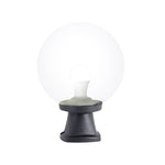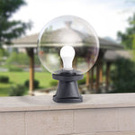 A modern style outdoor black globe pedestal post light. An square design based with a clear globe shade with modern materials to ensure long life use. Ideal for around the garden, top of walls, along pathways & driveways. Made for both domestic and commercial applications.