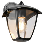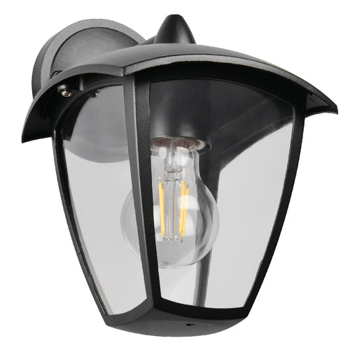 Enhance your home’s exterior with this stylish and functional outdoor down lantern wall light. Featuring a sleek black finish and a gently curved top, this fixture blends contemporary design with timeless appeal. Clear beveled panels offer maximum illumination while showcasing the decorative bulb within, perfect for filament-style LED lights. Built to withstand the elements, this durable light is ideal for porches, patios, entryways, and more. Add curb appeal and visibility to your outdoor spaces with this elegant and reliable wall-mounted fixture.