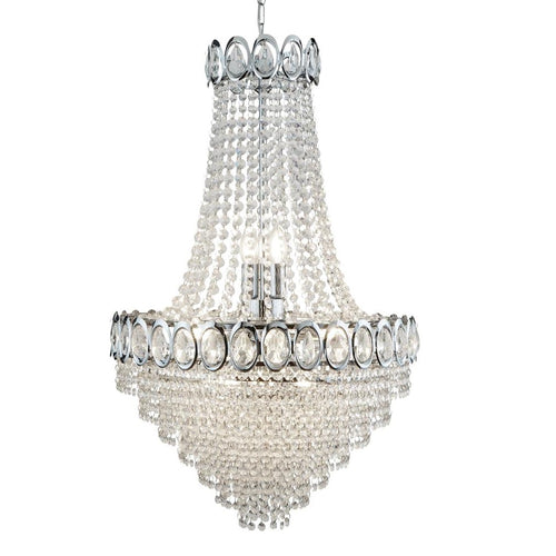 Searchlight 1711-11CC Polished Chrome & Crystal Bead Traditional 11 Lamp Chandelier Light - 54cm Diameter  A truly spectacular chandelier pendant ceiling light with polished chrome metalwork adorned with crystal strings and...
