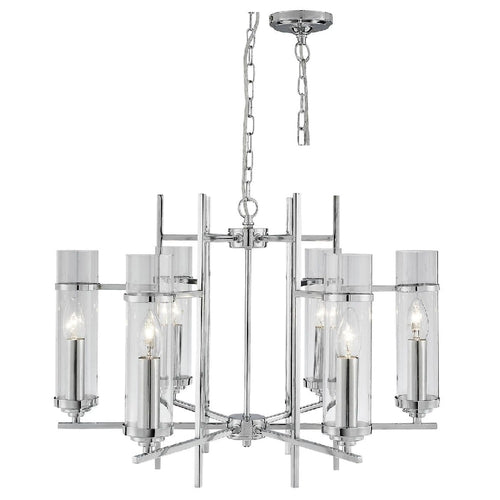 Searchlight 3096-6CC Polished Chrome & Clear Cylinder Glass Modern 6 Lamp Pendant Light - 59.5cm Diameter