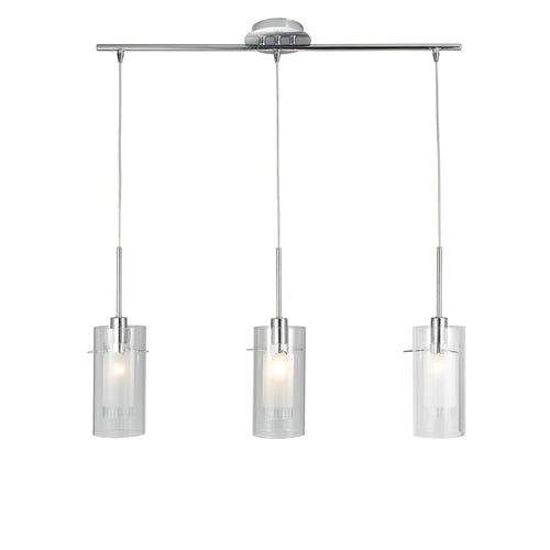 Searchlight 3303-3CC Duo 1 Polished Chrome & Double Cylinder Glass 3 Lamp Bar Pendant Light – 71cm Width