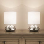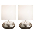 K Living LPEBBLETOUCH/TL Satin Chrome Modern Globe Touch Table Lamp with White Cylindrical Drum Shade Twin Pack - 23cm Height