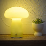 Product: K Living LCORYLEM/TL Yellow Glass Rechargeable Table Lamp | Cordless Mushroom Portable Table Lamp