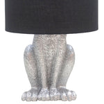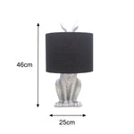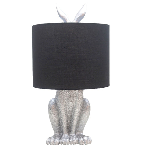 Britalia BRA1011 Silver Resin Hiding Hare Table Lamp with Black Drum Lampshade - 46cm Height  This spectacular vintage table lamp is styled around a hiding hare sculpture design. Finished in silver resin and...