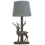 Britalia BRA1013 Antique Gold Sika Deer Stag Table Lamp with Grey Tapered Shade - 44cm Height  This spectacular vintage table lamp is styled around a standing sika deer stag sculpture design. Finished in antique...
