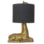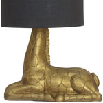 Britalia BRA1016 Gold Resin Sitting Down Giraffe Table Lamp with Black Drum Lampshade - 48cm Height  This spectacular vintage table lamp is styled around a sitting down giraffe sculpture design. Finished in gold resin and...