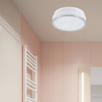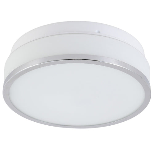 Britalia BRB016 Polished Chrome & White Glass Bathroom Vintage Round Flush Light - 23cm Diameter - IP44 Rated  A high quality white glass round bathroom flush light with a polished chrome edged surround. The...