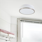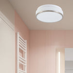 Britalia BRB019 Satin Brushed Chrome & White Glass Bathroom Vintage Round Flush Light - 28cm Diameter - IP44 Rated  A high quality white glass round bathroom flush light with a satin chrome edged surround....