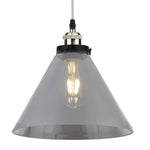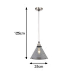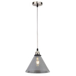 Britalia BRG004+PMS9 Satin Brushed Chrome & Smoked Pyramid Glass Vintage Pendant Ceiling Light - 25cm Diameter  A stunning smoked glass pyramid shade with satin chrome round fixing plate & lampholder. The flex is round braided cable to...