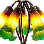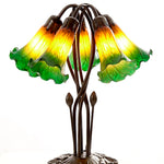 Britalia BRLILY5T-AM-GR Antique Brass with Amber & Green Tiffany Glass Vintage Lily 5 Arm Table Lamp 48cm  The Lily is a genuine hand made stained double tiffany glass table desk lamp with a...