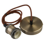 Britalia PMS3 Antique Brass Vintage Fabric Round Cable Flex Suspension Ceiling Rose Pendant  A high quality metal pendant ceiling flex cable suspension rose with an antique brass main round flush fitting plate and brown...