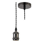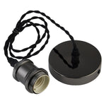 Britalia PMS8 Black Chrome Vintage Fabric Twisted Cable Flex Suspension Ceiling Rose Pendant  A high quality metal pendant ceiling flex cable suspension rose with a black chrome main round flush fitting...