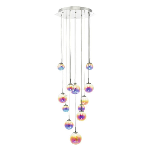 DAR CES1250 Cesario LED Chrome & Multicolour 12 Lamp Cluster Pendant – 150cm Height  The DAR CES1250 Cesario is a 12 Lamp LED Integrated cluster pendant light. It features a...