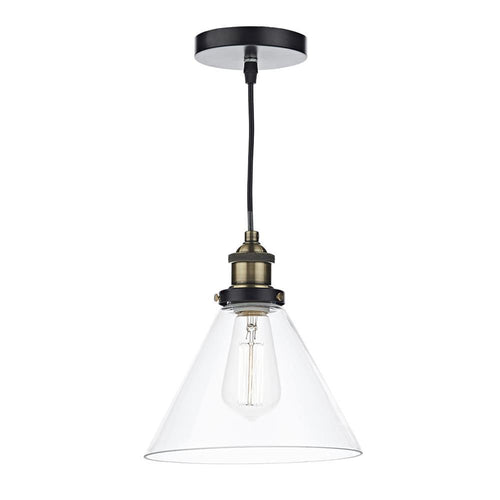 DAR RAY0175 Ray Antique Brass 1 Lamp Vintage Pendant Light with Clear Glass Shade – 23cm Diameter  The DAR RAY0175 Ray Antique Brass Pendant Light features a circular ceiling rose...