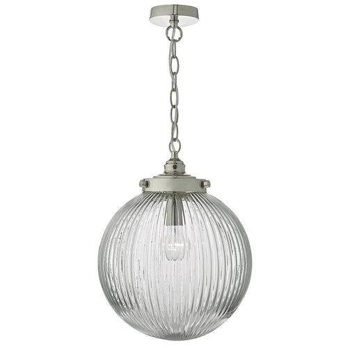 DAR TAM0138 Tamara Satin Nickel & Ribbed Glass Vintage Globe Pendant – 29cm Diameter  The DAR TAM0138 Tamara is a Satin Nickel pendant light, featuring a ribbed glass spherical shade,...