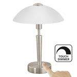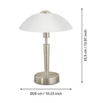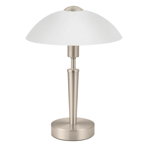 Eglo 85104 Satin Nickel and White Satin Glass Traditional Touch Table lamp - 35cm Height  The Eglo 85104 is a traditional touch table lamp in a Satin Nickel finish, It...