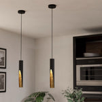Eglo 900872 Matt Black & Gold Inner Vintage Metal Cylinder Pendant Light - 6cm Diameter  A stunning matt black slimline cylindrical shape pendant ceiling light with gold inner finish. A sleek pendant...