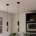 Eglo 900874 Matt Black & Wood Effect Inner Vintage Metal Cylinder Pendant Light - 6cm Diameter  A stunning matt black slimline cylindrical shape pendant ceiling light with a brown wood effect inner finish. A sleek...