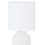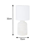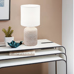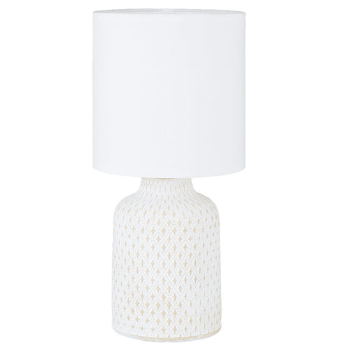 Eglo 97773 Cream Distressed Ceramic Vintage Geometric Table Lamp with White Drum Shade - 32cm Height  A beautiful ceramic table lamp finished in distressed cream with a unique geometric pattern base. The...