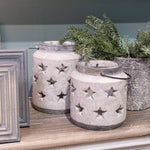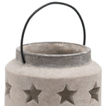 Hill Interiors 20729 Grey Stone Textured Ceramic Round Stars Cutout Lantern Candle Holder - 19cm Height  A stunning ceramic round hurricane lantern style finished in grey stone textured ceramic with stars cutout...