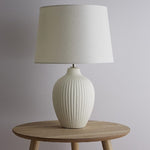 K Living LNORACRM/TLWS Cream Ribbed Ceramic Modern Table Lamp with Cream Drum Shade - 51cm Height  A stunning vintage style table lamp with a cream ceramic vertical ribbed effect base...