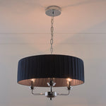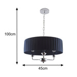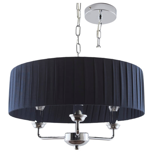 K Living LGIULIANV/3LT Polished Chrome & Navy Blue Pleated Drum Shade 3 Lamp Pendant Ceiling Light - 45cm Diameter  A stunning three lamp polished chrome metalwork pendant ceiling light surrounded...