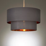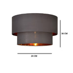 K Living L36RONAGRYGO/PE Grey Fabric and Gold Inner Two Tier Modern Easy Fit Drum Lampshade - 36cm Height  This Contemporary grey fabric two tier lampshade is not only stylish but also very practical. The...