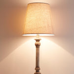 K Living LHAGUEGRY/TLWS Grey Resin Vintage Candlestick Table Lamp with Natural Linen Shade - 60cm Height  A stunning vintage style table lamp with a candlestick base made from grey resin,...